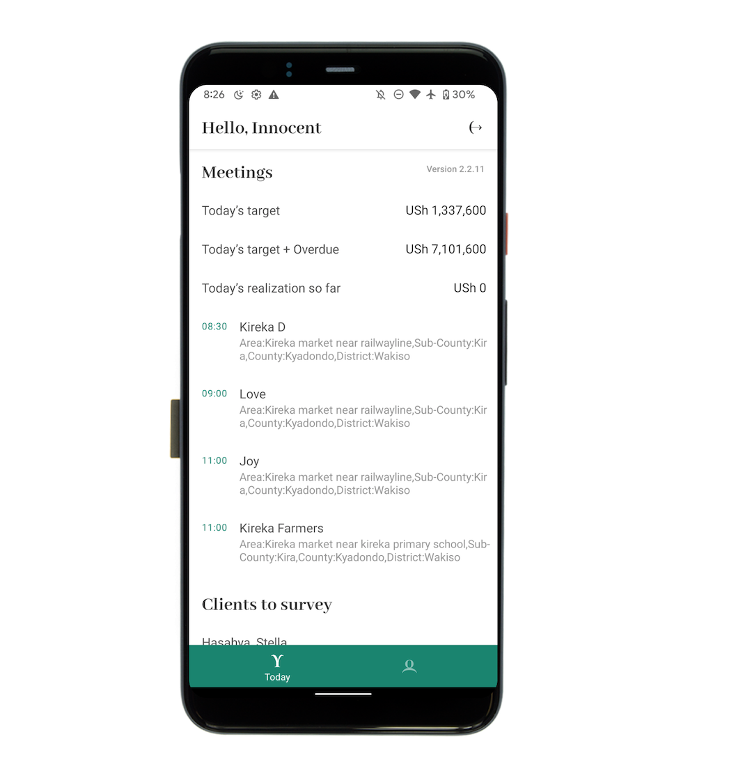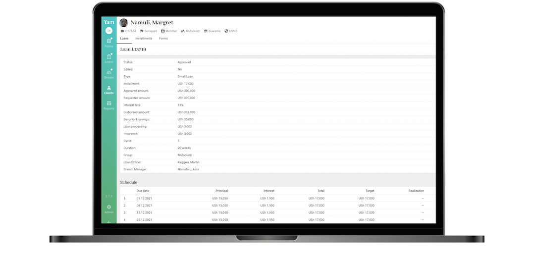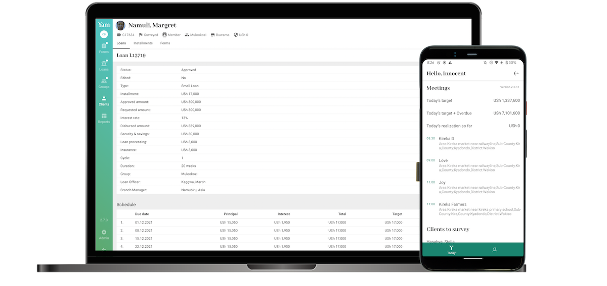 Yam's mobile app supports an offline mode so that loan officers can use the app in remote areas, and sync their data when they have a connection.